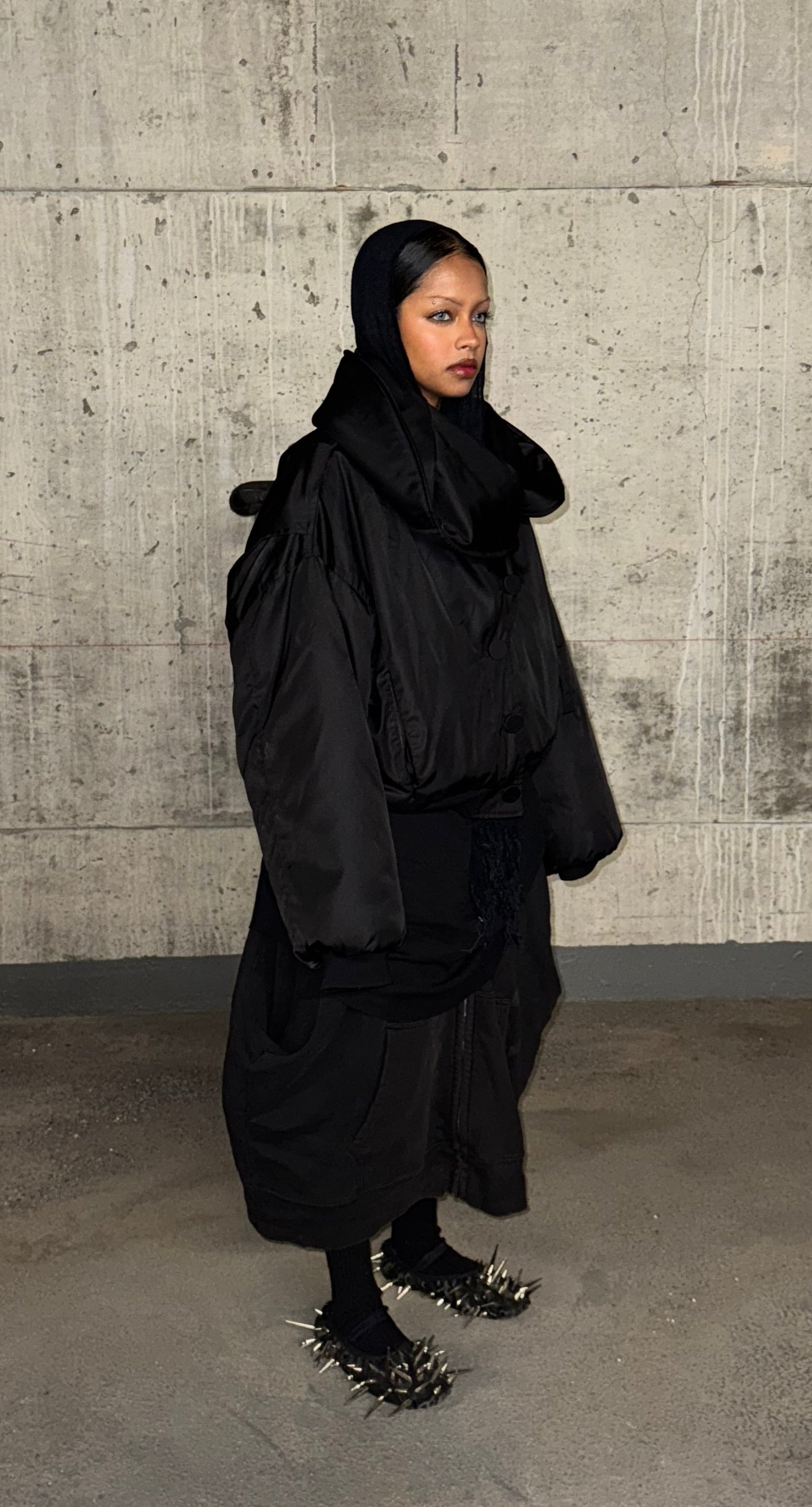Genuine leather flats with a variety of industrial grade stainless steel spike adornments and a reinforced sole